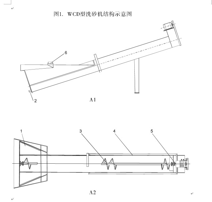 螺旋洗砂機由槽體、減速機、電機、中心軸、螺旋葉片、支架組成。支架焊接在中心軸上,螺旋葉片裝好后用螺栓壓緊,使葉片不下垂不變形。